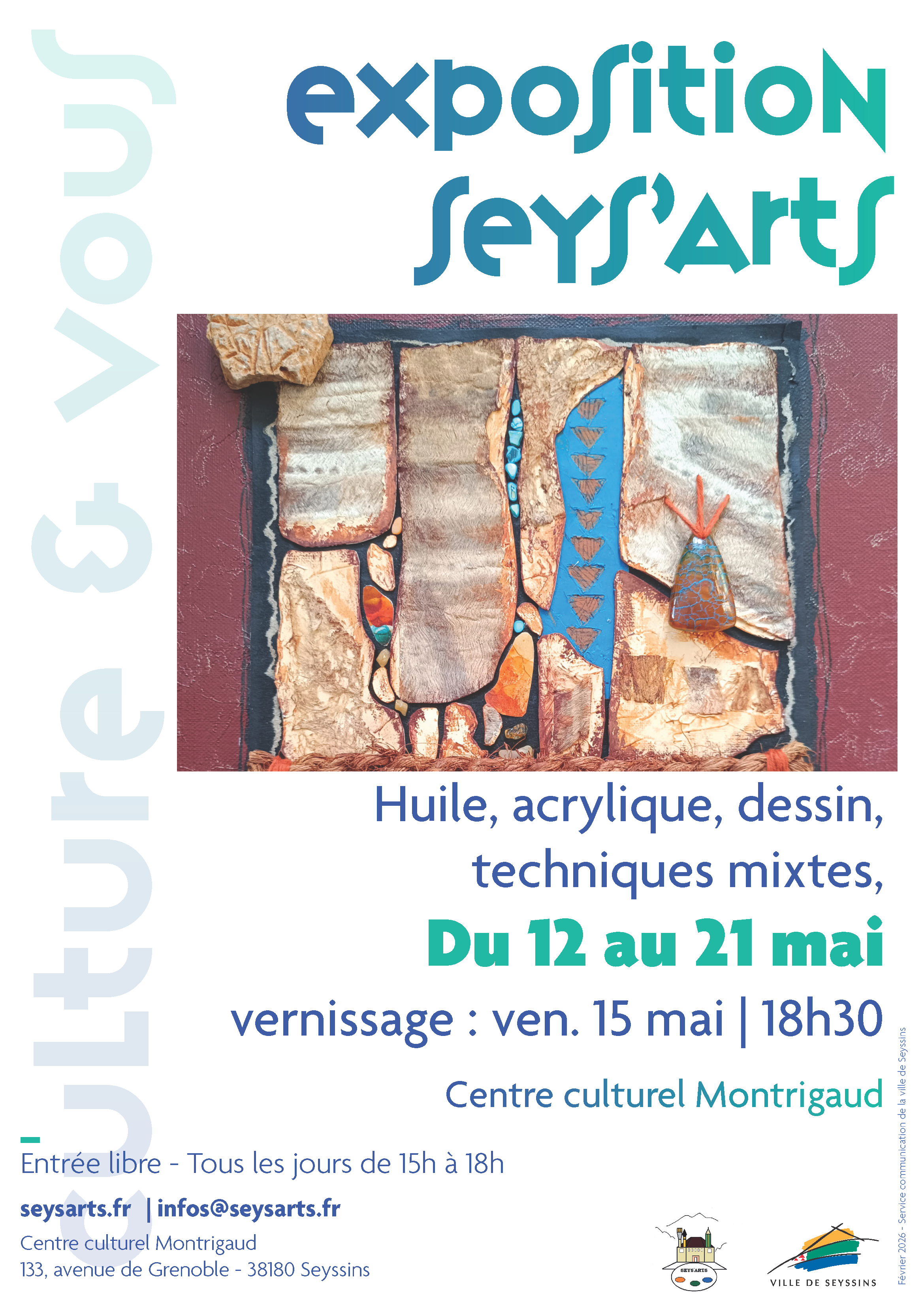 Huile, Acrylique, dessin et techniques mixtes du 12 au 21 mai 2026.