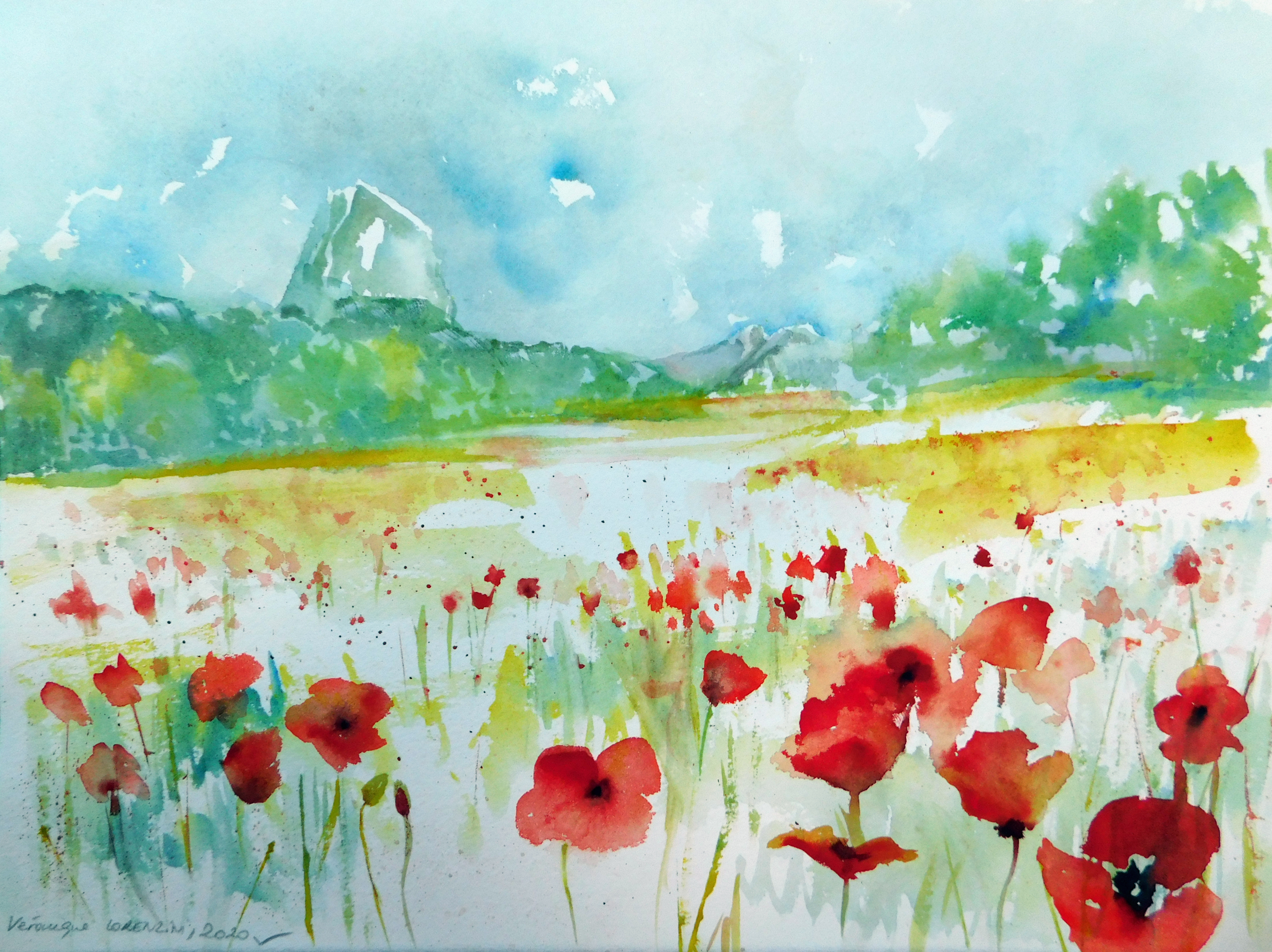 Mont Aiguille et coquelicots