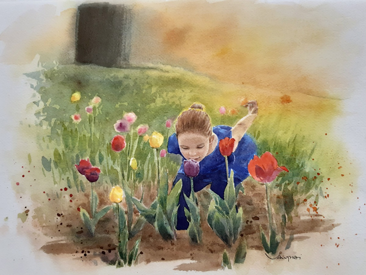 Petite fille aux tulipes